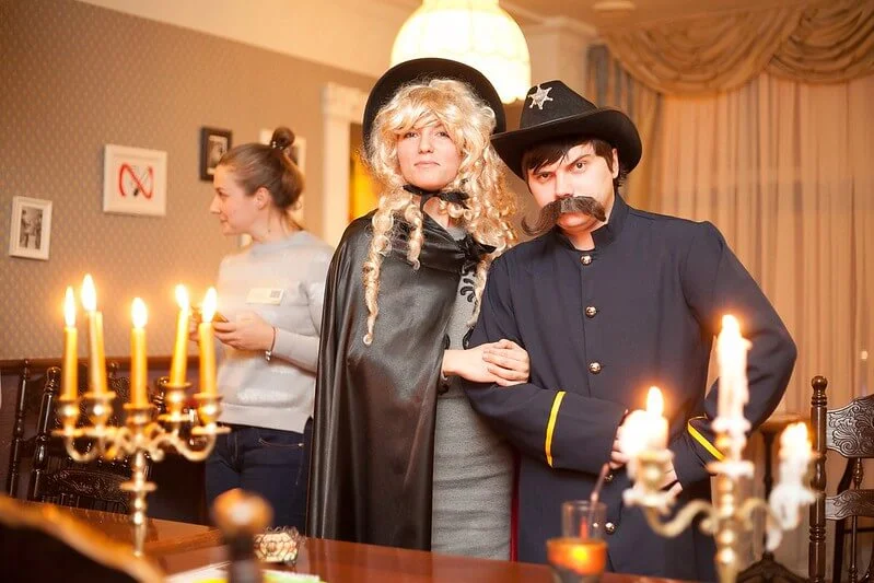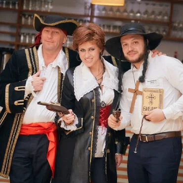 Представьте: к вам приезжает ведущий с реквизитом и костюмами, и гости перевоплощаются в героев фильма. Но если в фильме всё известно заранее, то здесь нажали «стоп» и сказали: «Дальше действуйте вы».