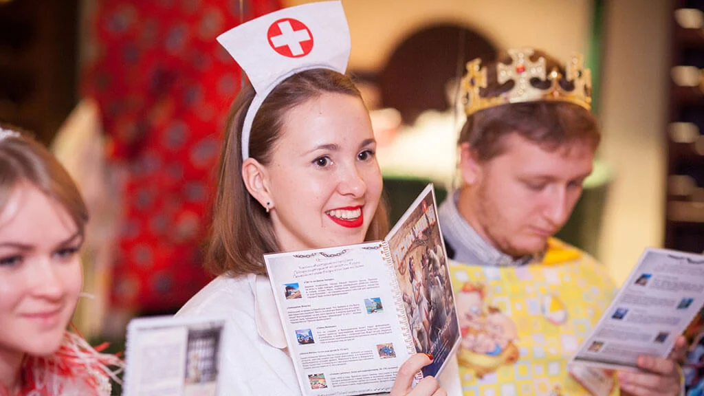 Квестория — это игра-общение, в которой вы становитесь героями увлекательной истории, где у каждого — своя роль и цели. Играть можно с компанией друзей, родных или коллег — ведущий приедет в удобное для вас место.